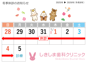 本年の冬季休診日は、下記の通りです。